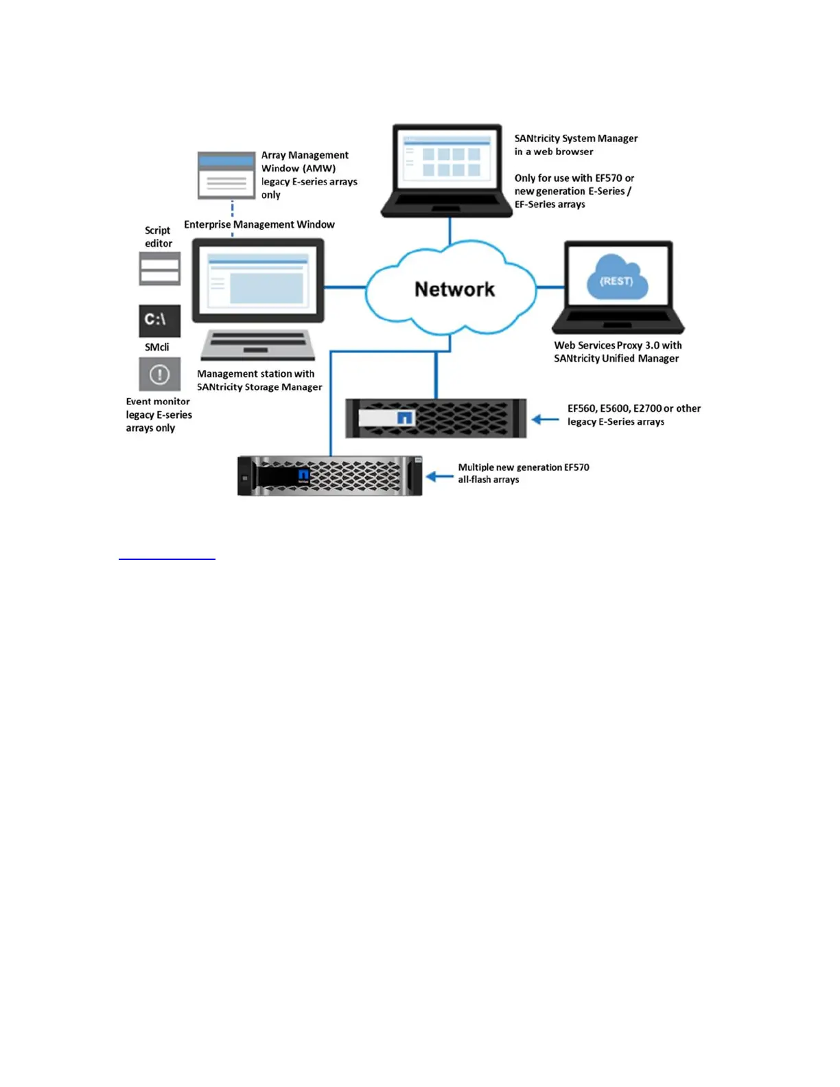SANtricity Storage Manager Enterprise Management Window (EMW) for managing the new-generation