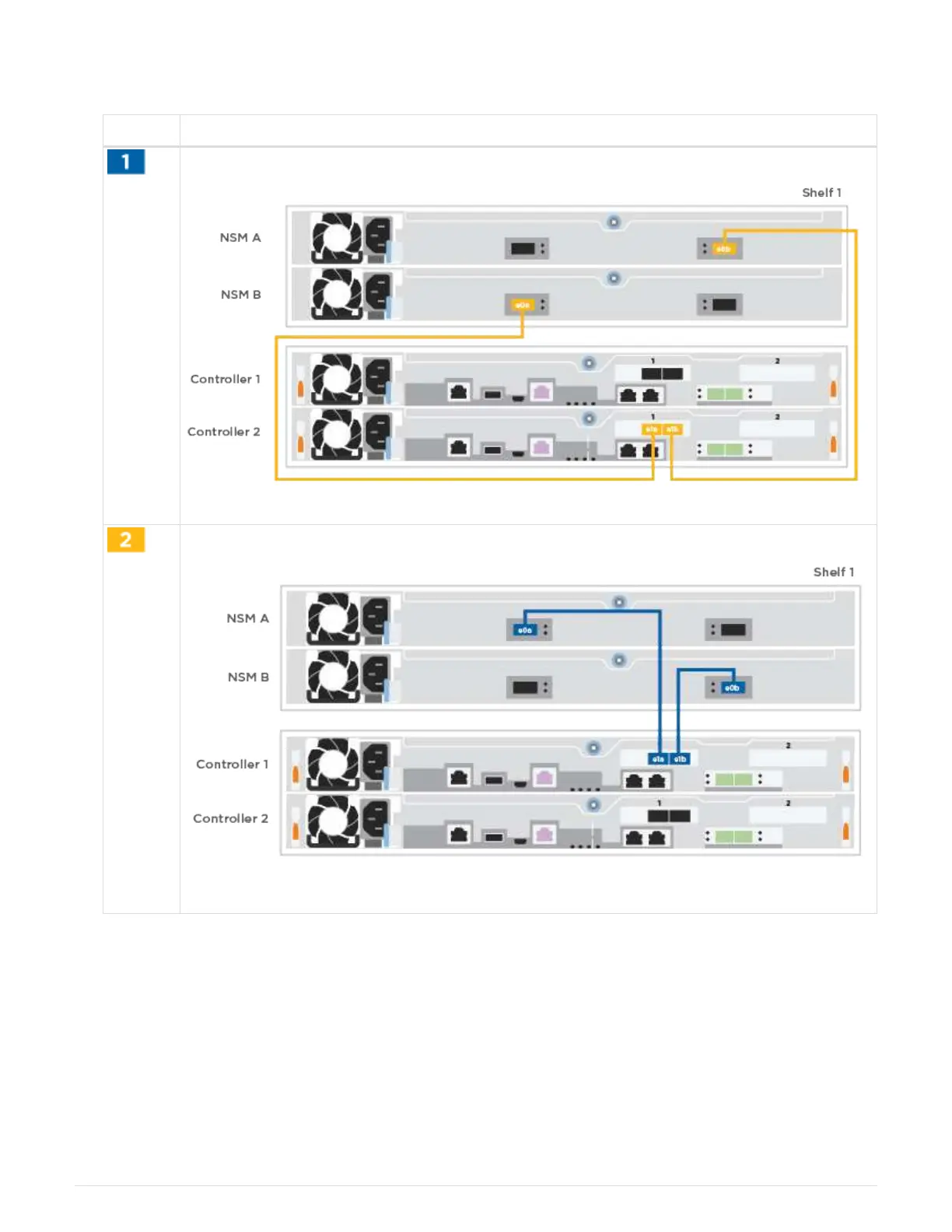 1. Use the animation (Cabling the controllers to a single NS224) or the step-by-step instructions to cable your