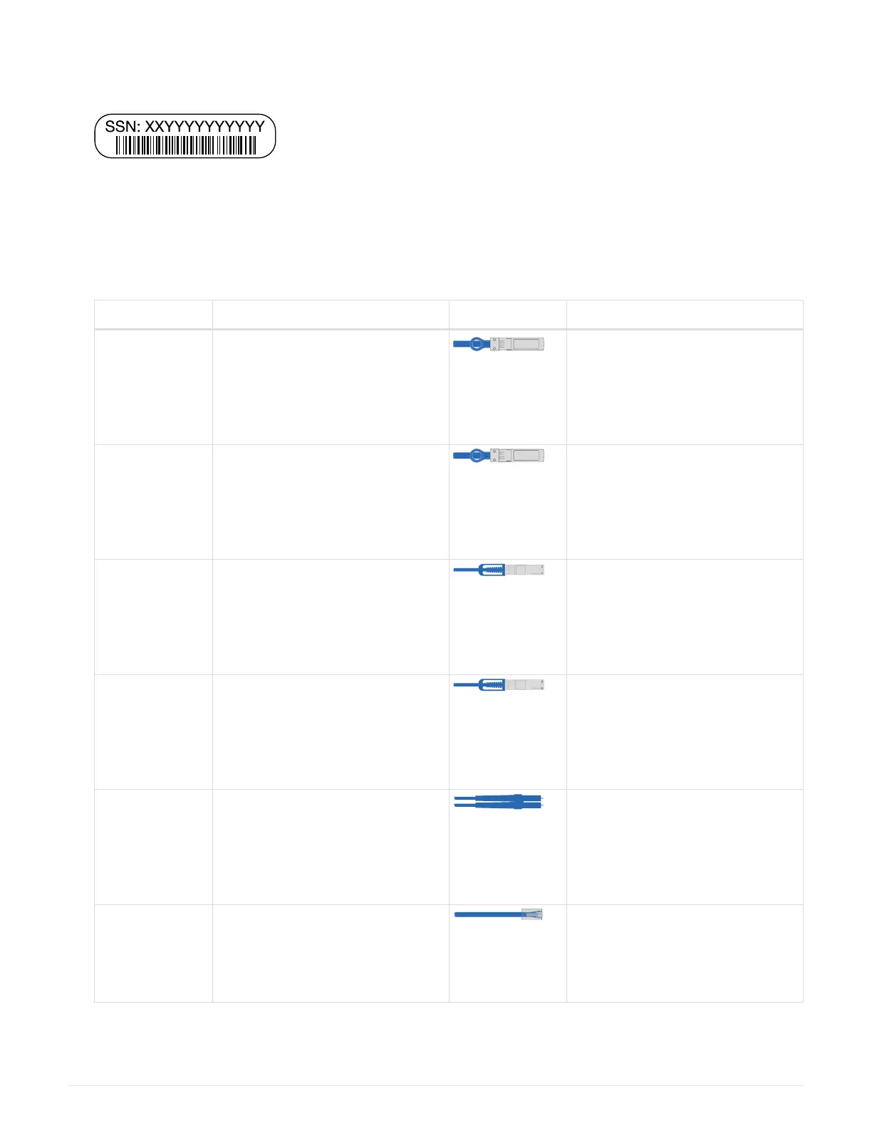 The following table identifies the types of cables you might receive. If you receive a cable not listed in the
