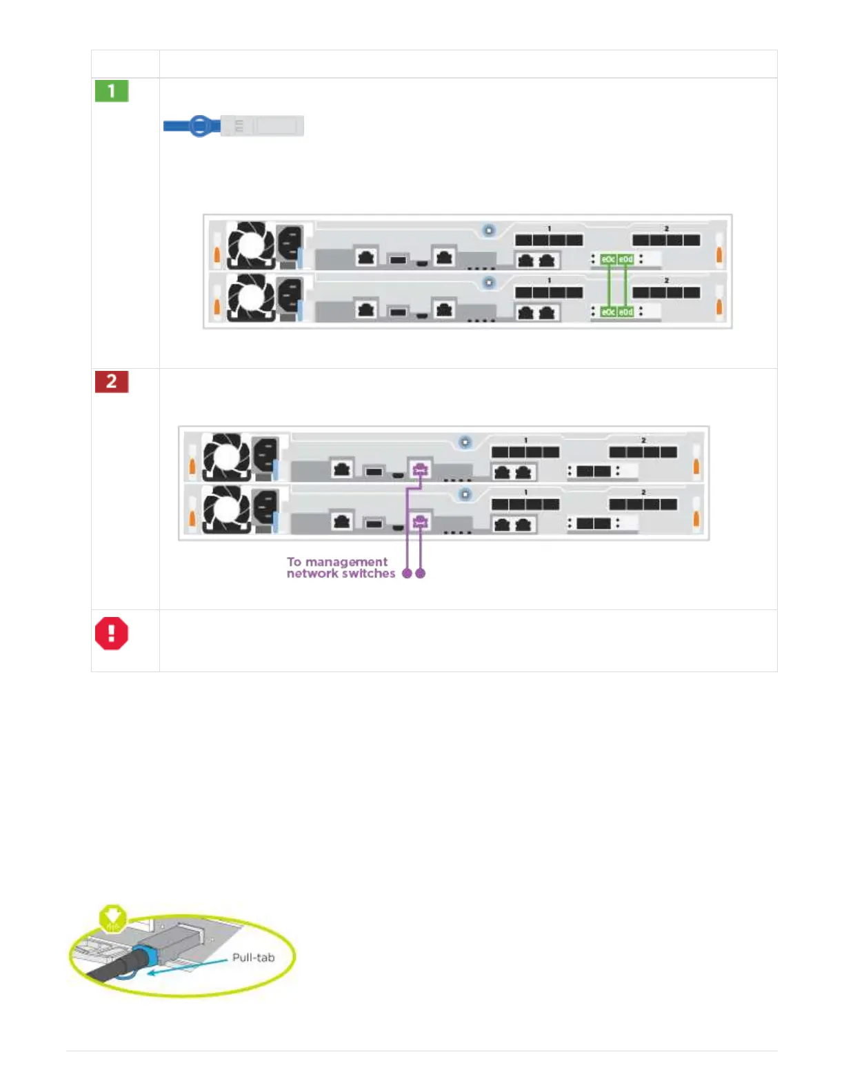 Cable the cluster interconnect ports to each other with the 25GbE cluster interconnect cable