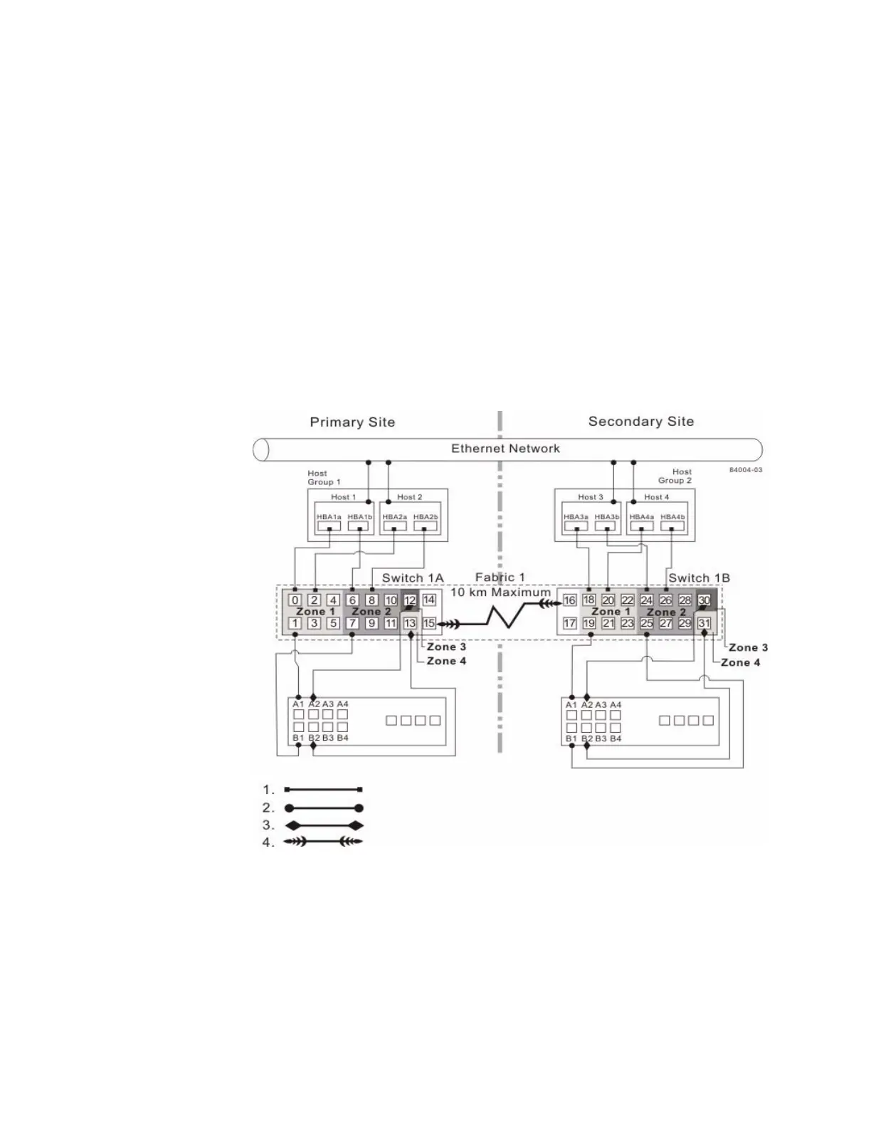 site, rather than two. The configuration is still redundant for host bus adapters,
