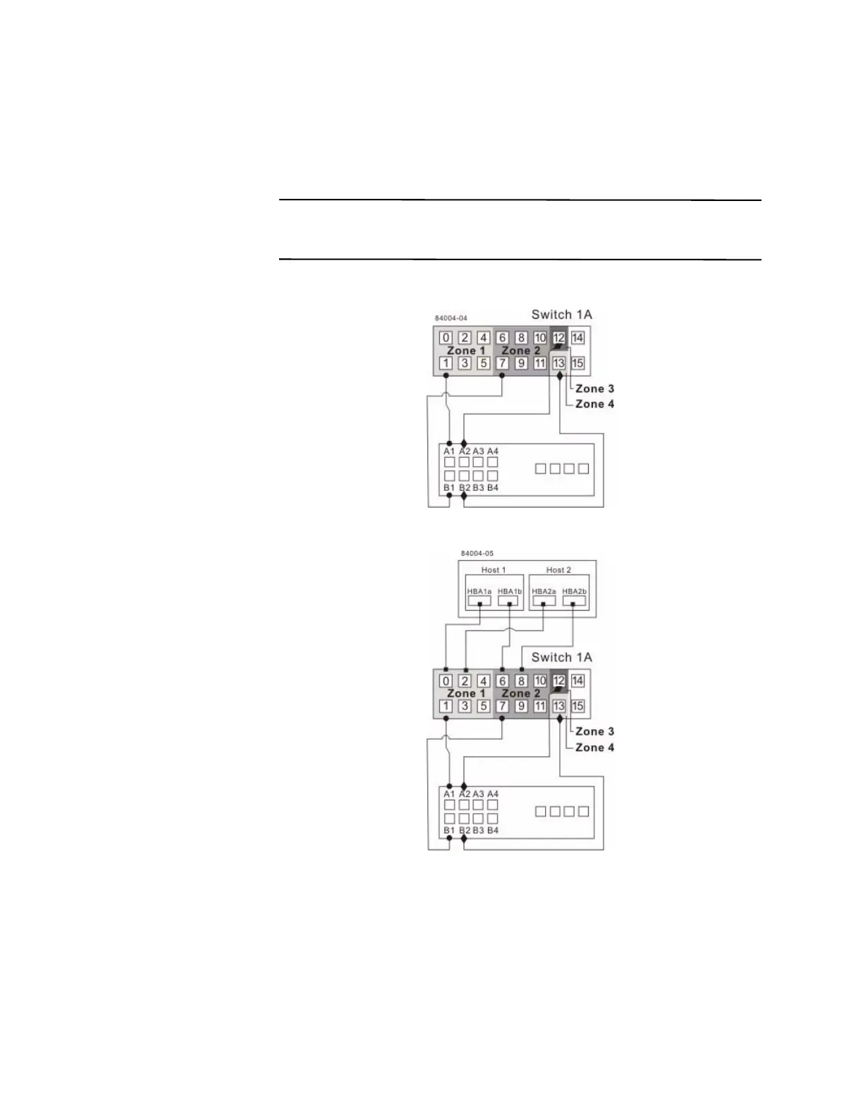 switch 1A. In a four-host-port system, connect controller port B4.