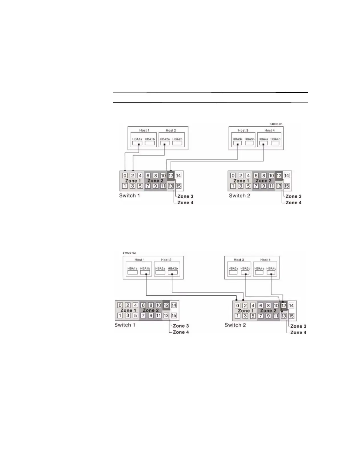 5. Connect the secondary host bus adapter for each host to an available port in zone