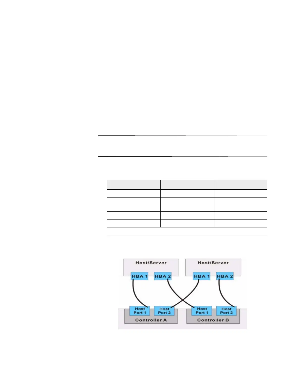 The example in the figure shows HBA1 and HBA2 as connecting points on the host.