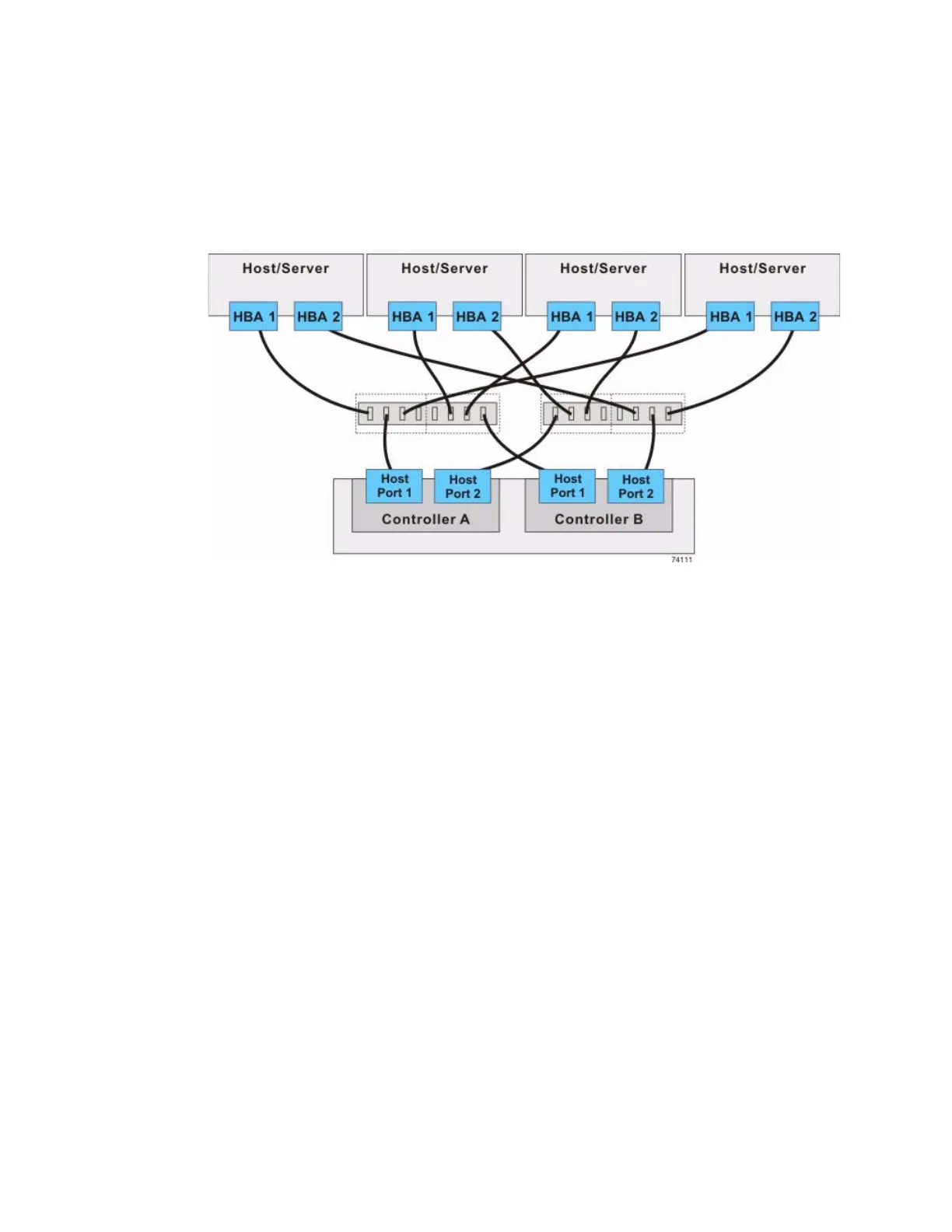 Figure 9 Switch Topology – Four Hosts and a Controller Tray or a