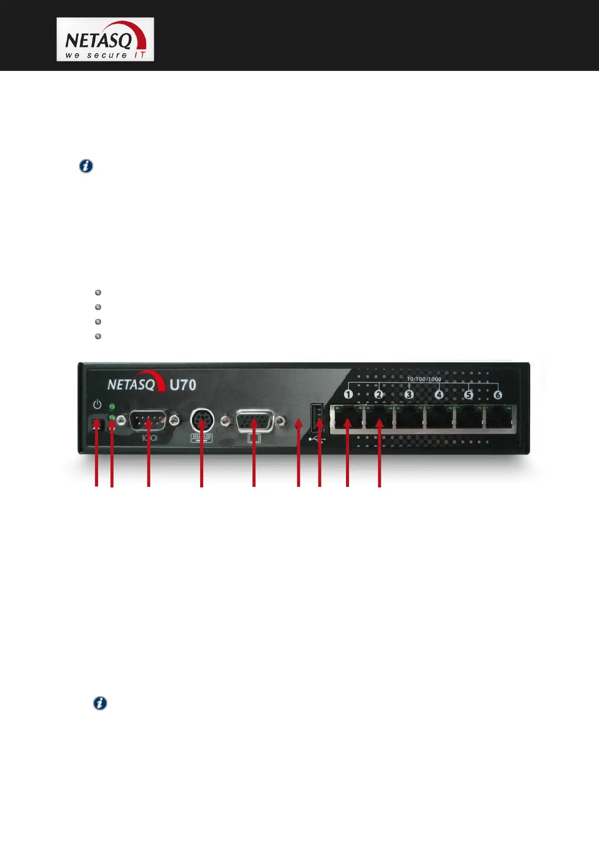 The LEDs above the interfaces provide indications as to the throughput. For the U30, an interface