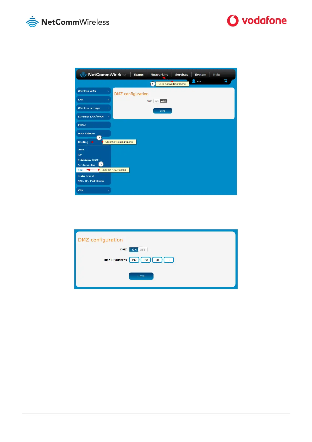 18 Click the Save button. The IP address you entered will have all ports forwarded to it.