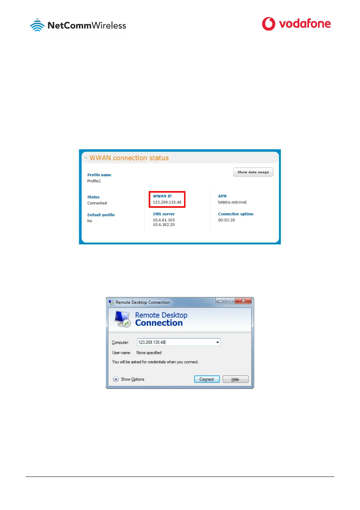20 Type the WAN IP address of the remote router and click Connect.
