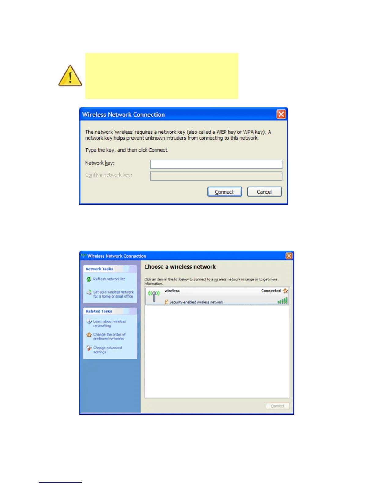 6. If you are prompted to enter a “Network key” (also known as a WEP or WPA key),