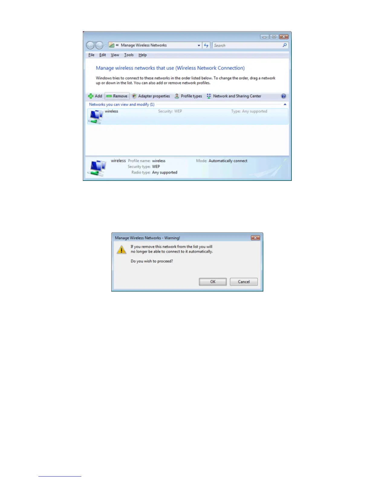 If your SSID is not listed, or you have just removed it, close this window and you should be