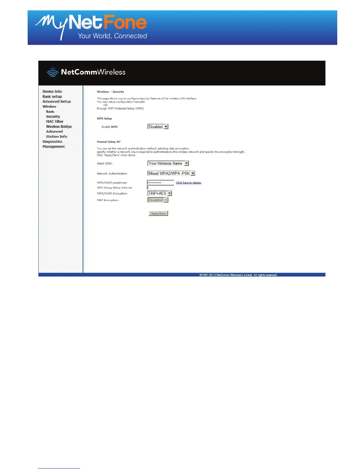 9. Click ‘Apply/Save’.