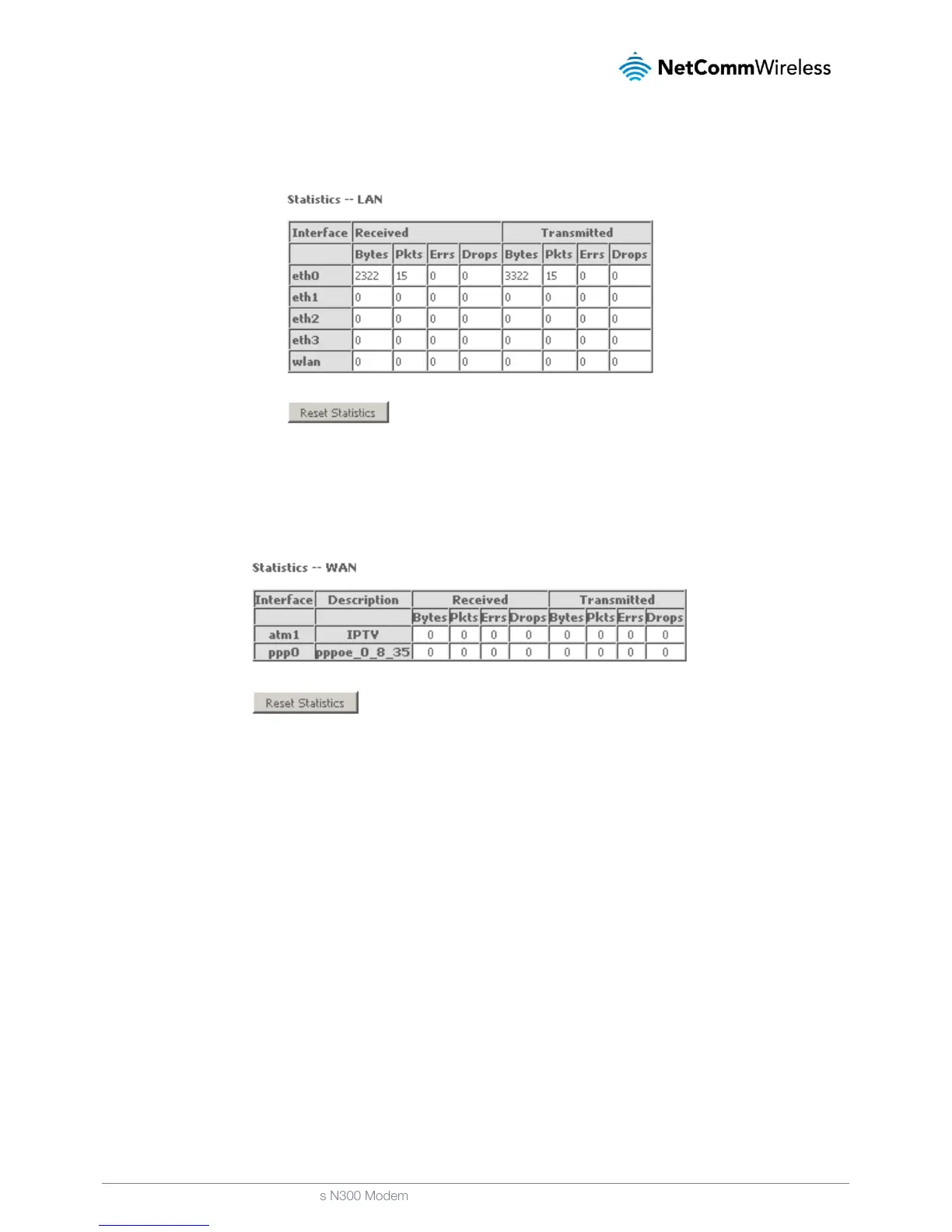 The WAN page displays information about the WAN connection in use by the NB604N. An entry will be shown for each configured
