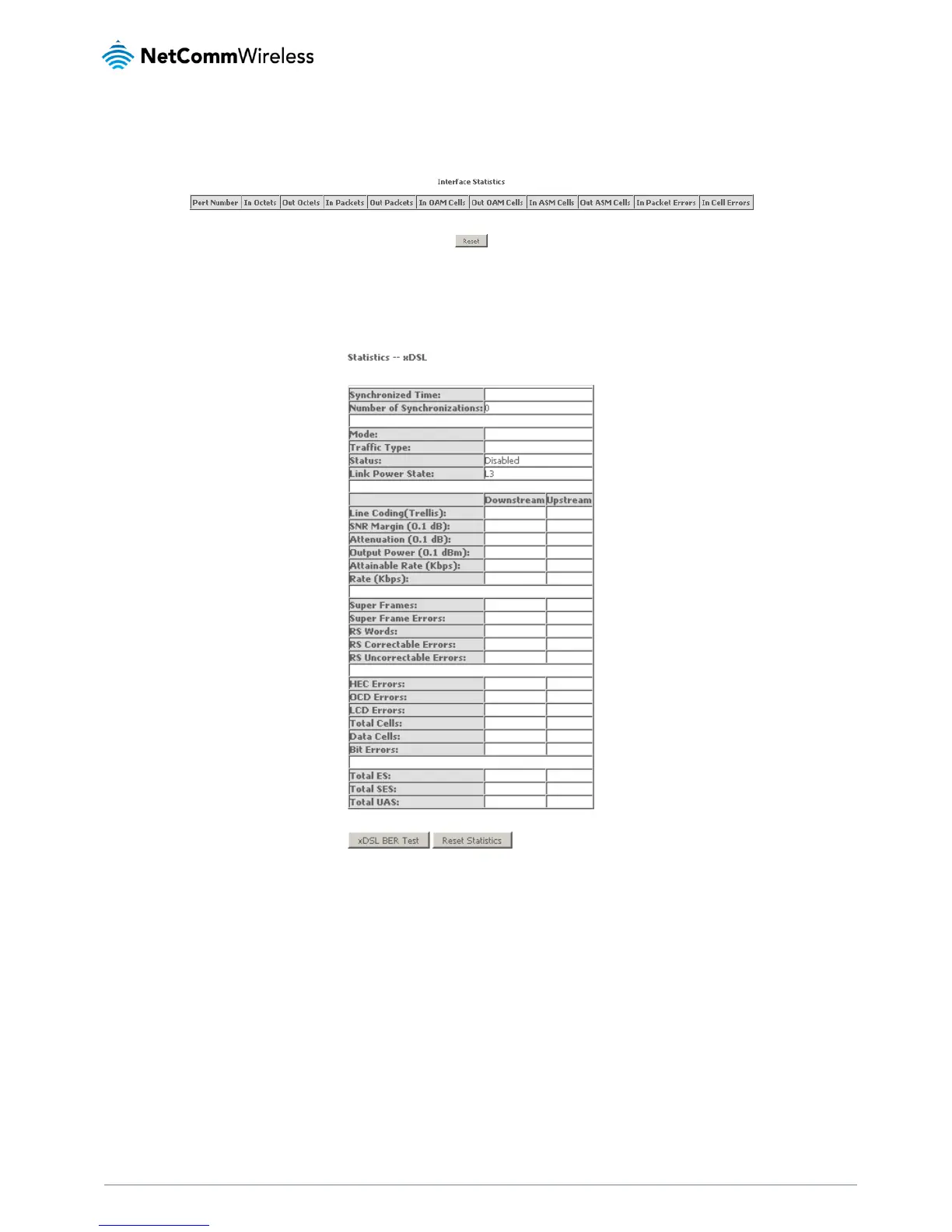 The Asynchronous Transfer Mode (ATM) page shows information about the currently configured ATM interface.