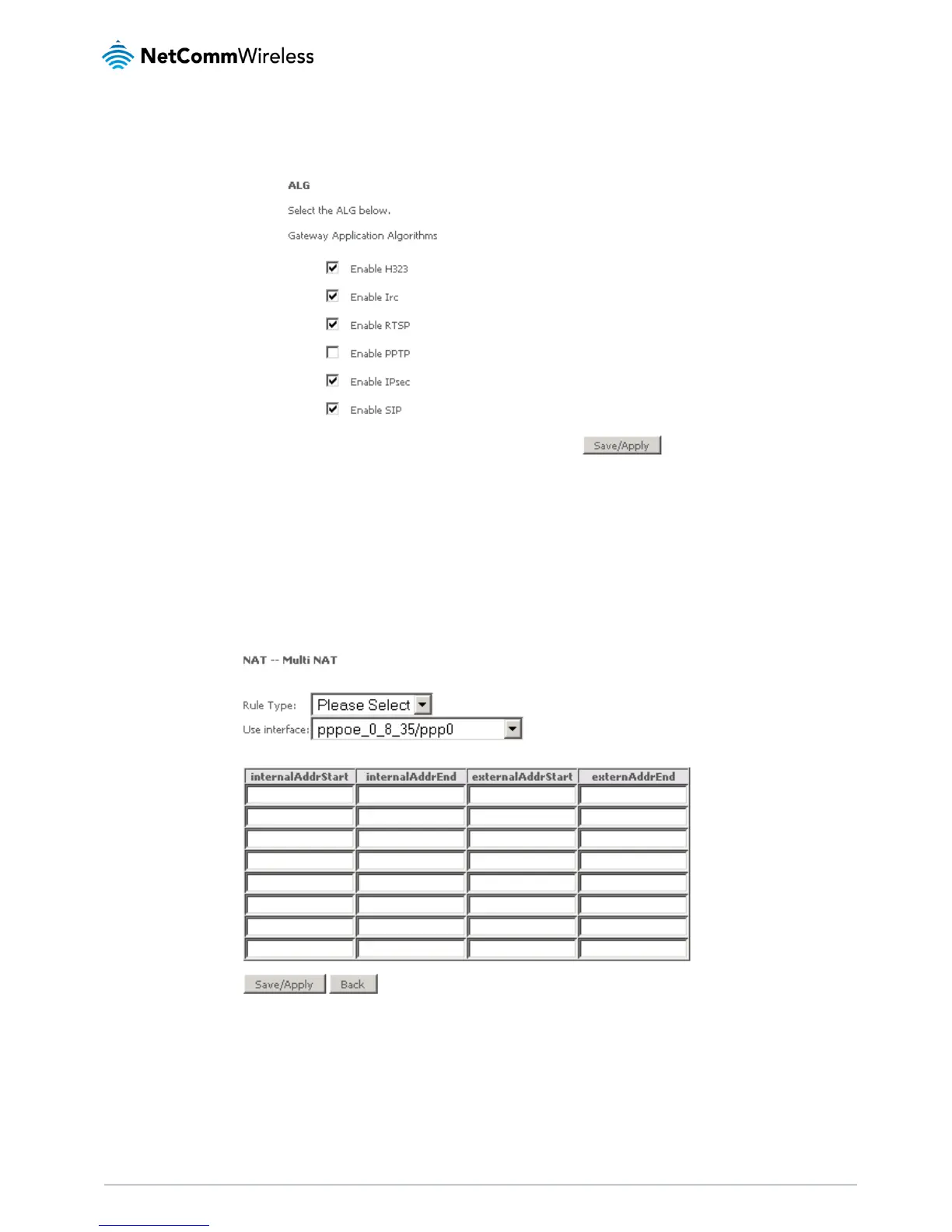 Click Save/Apply to save the new Multi NAT configuration settings.