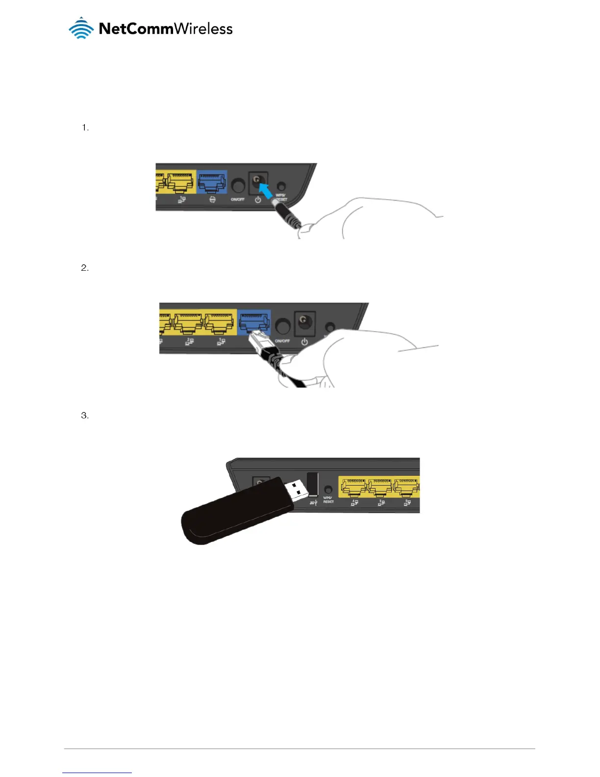 If you have a mobile broadband dongle for use as a backup WAN connection, connect it to the USB port on the rear of the