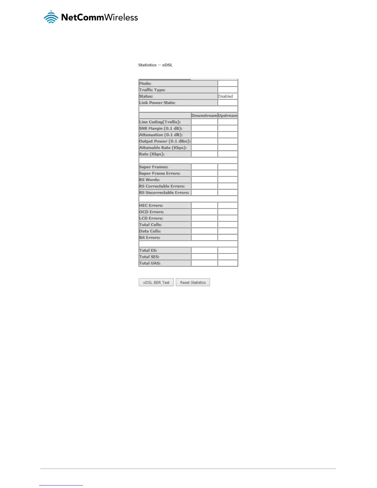 The Statistics xDSL page shows details related to the DSL interface of the router.