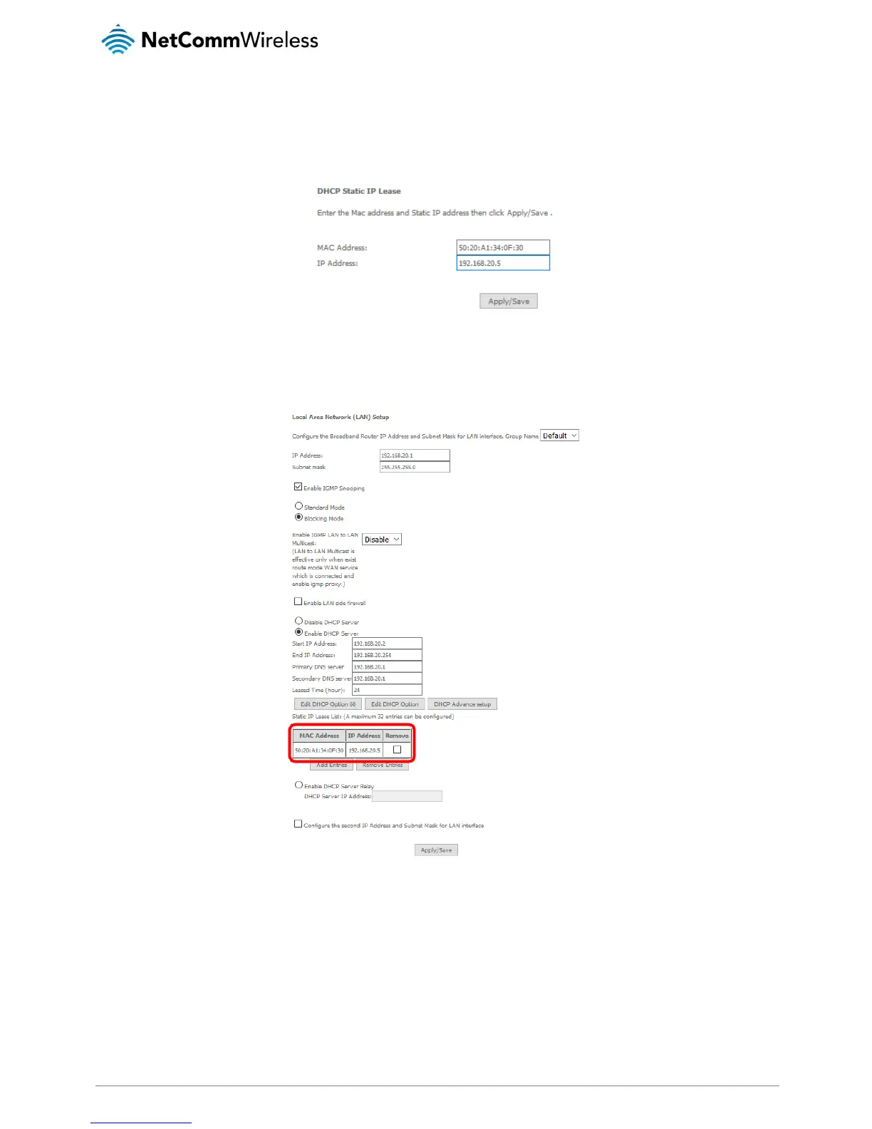 e) Enter the MAC address of the computer/device you are connecting to the router. The MAC address os a 12 character set