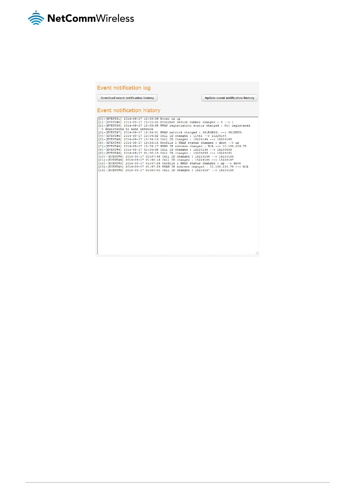in troubleshooting any problems you may have with the Event notification feature. To access the Event notification log page, click on