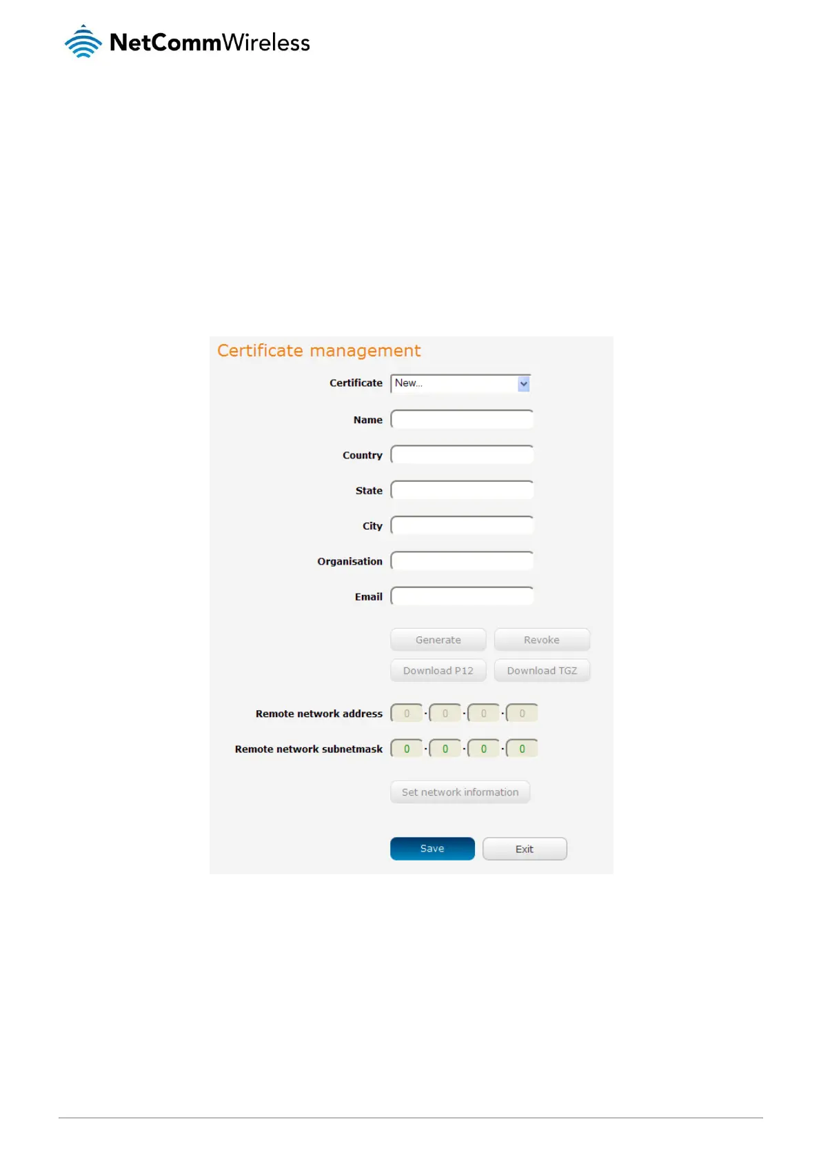 Optional: To inform the OpenVPN server of the network address scheme of the currently selected certificate, enter the