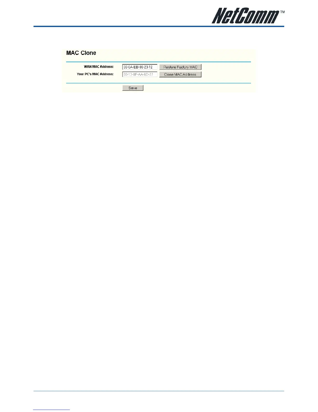 1) Only the PC on your LAN can use the MAC Address Clone feature.