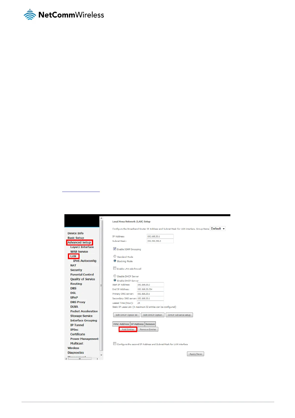 It is necessary to reserve an IP address for each of the devices connecting to the NF10WV router so that QoS settings can be