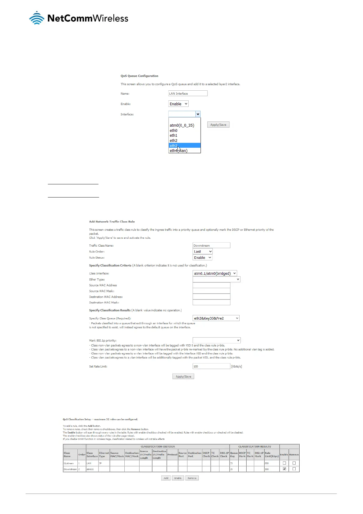 a) Navigate to the QoS Queue page to add a queue for the LAN interface, for example: