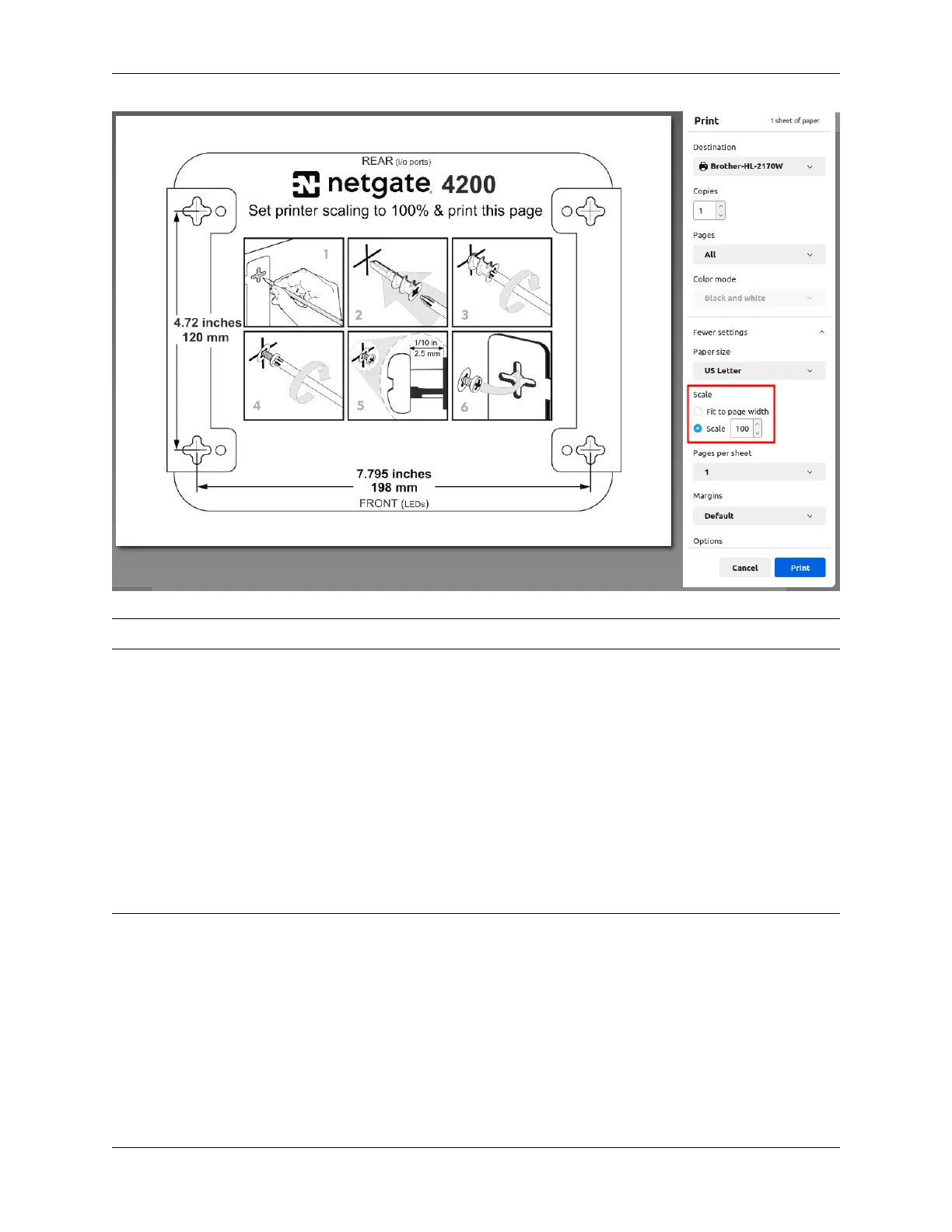 Note: The 100% Scale setting varies by PDF reader, printer manufacturer, and model.
