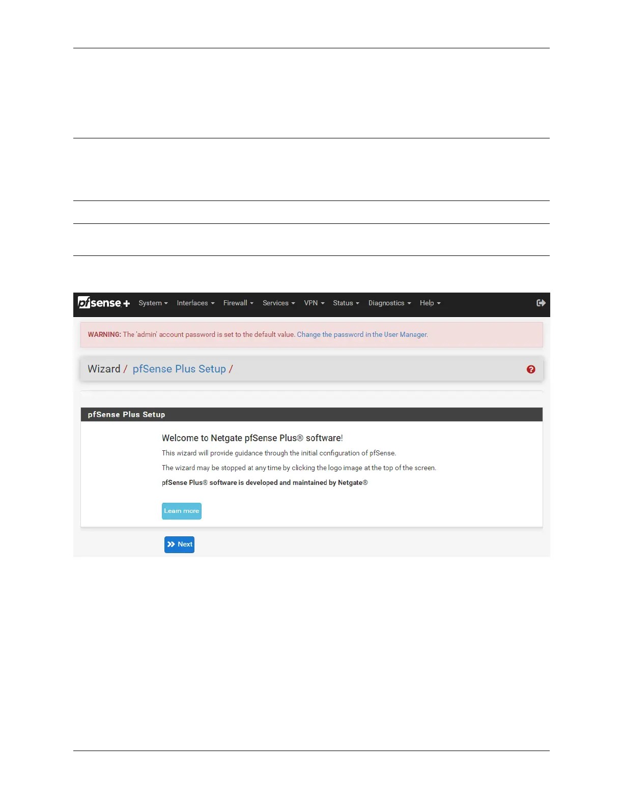 This section steps through each page of the Setup Wizard to perform the initial configuration of the firewall. The wizard