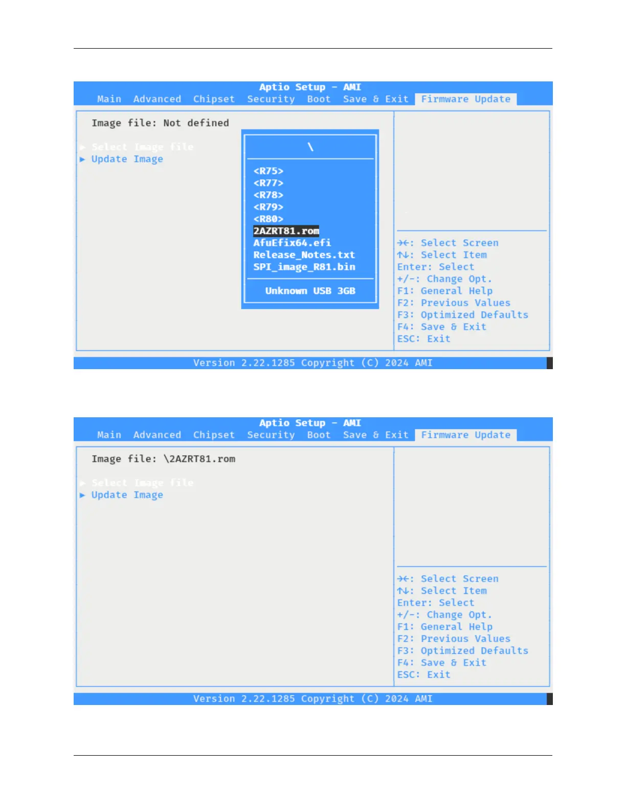 Fig. 21: Firmware Update tab with a BIOS Update Image File Selected