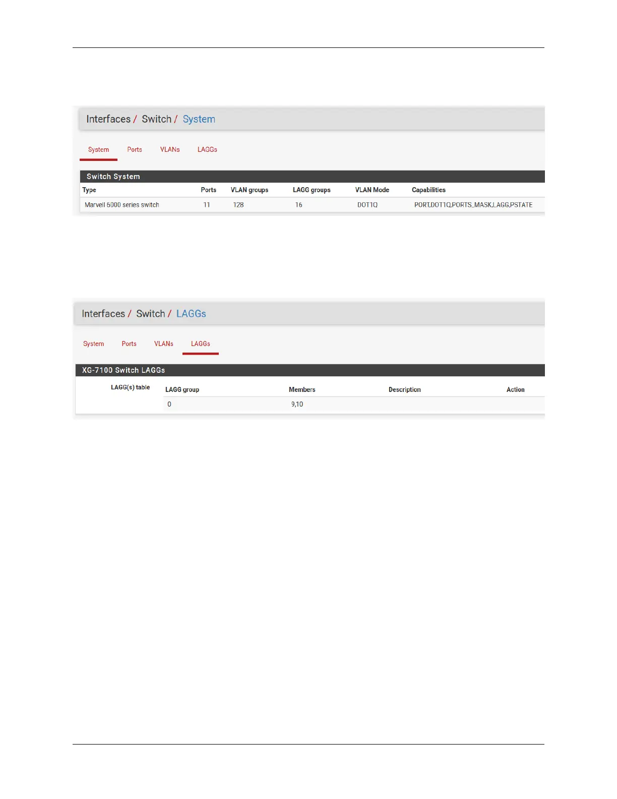 Information on switchport status and port names. If 802.1q is enabled, this section can also set the native VLAN ID