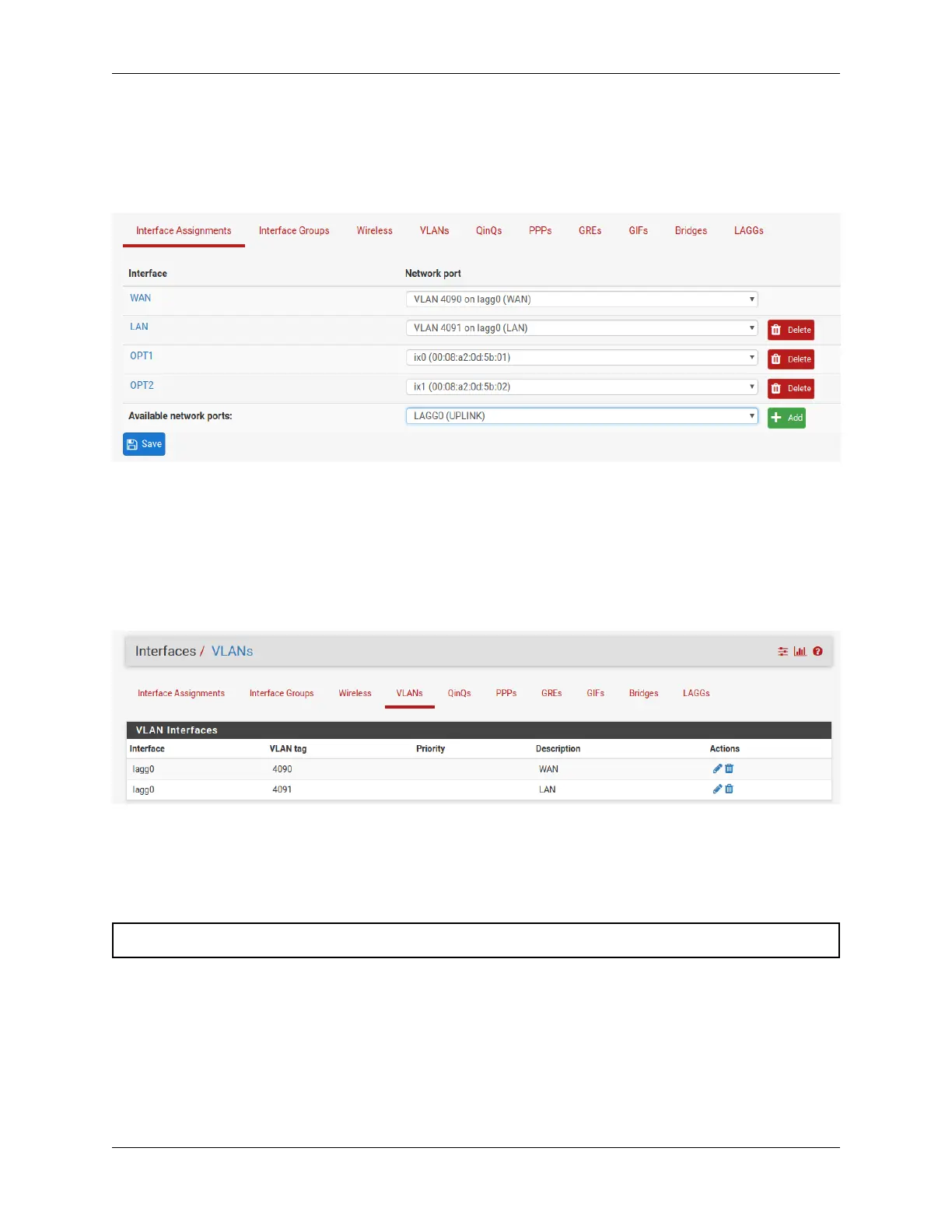 Under LAGGs, the list contains the default lagg0 containing ix2 and ix3.