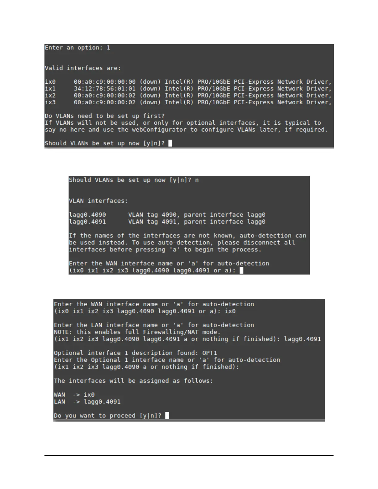 Input the same default LAN interface of lagg0.4091 for the LAN interface name and press Enter to complete the