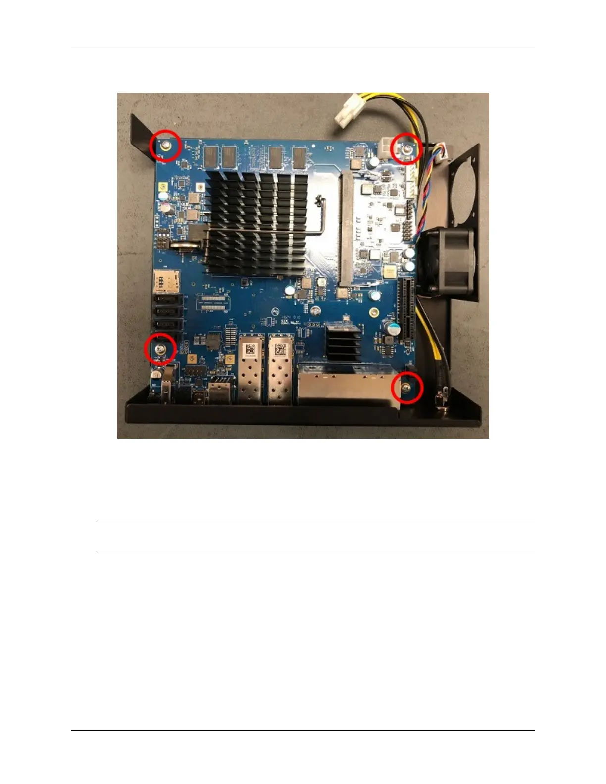 8. Turn the board over and place it into the chassis. Secure the system board with four (4) board screws.