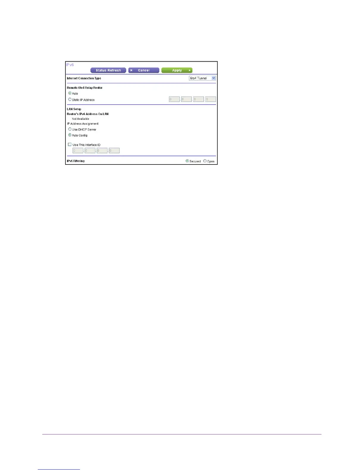 3. Configure the remote 6to4 relay router settings by selecting one of the following buttons: