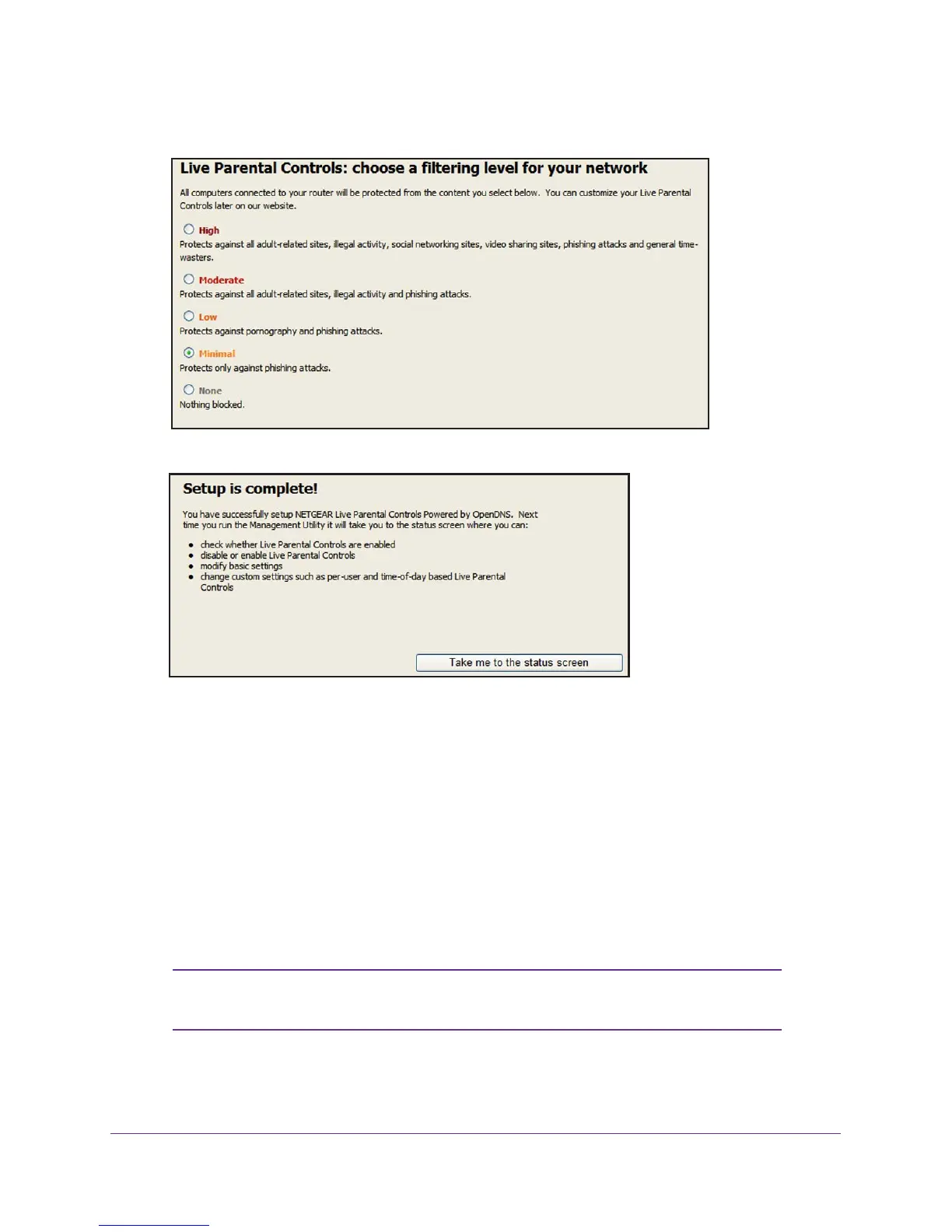 6. Select the radio button for the filtering level that you want and click the Next button.