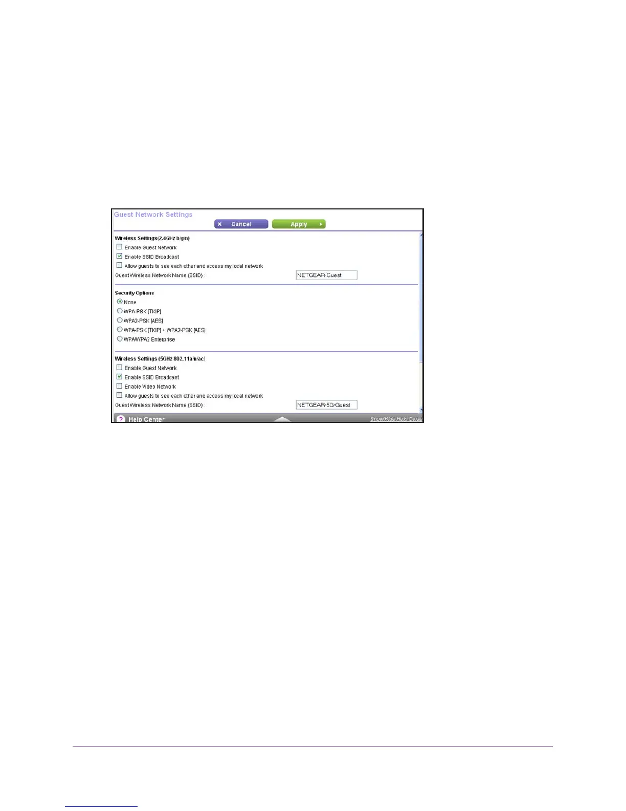 security key. You can add a guest network to each wireless network: 2.4 GHz b/g/n and 5.0