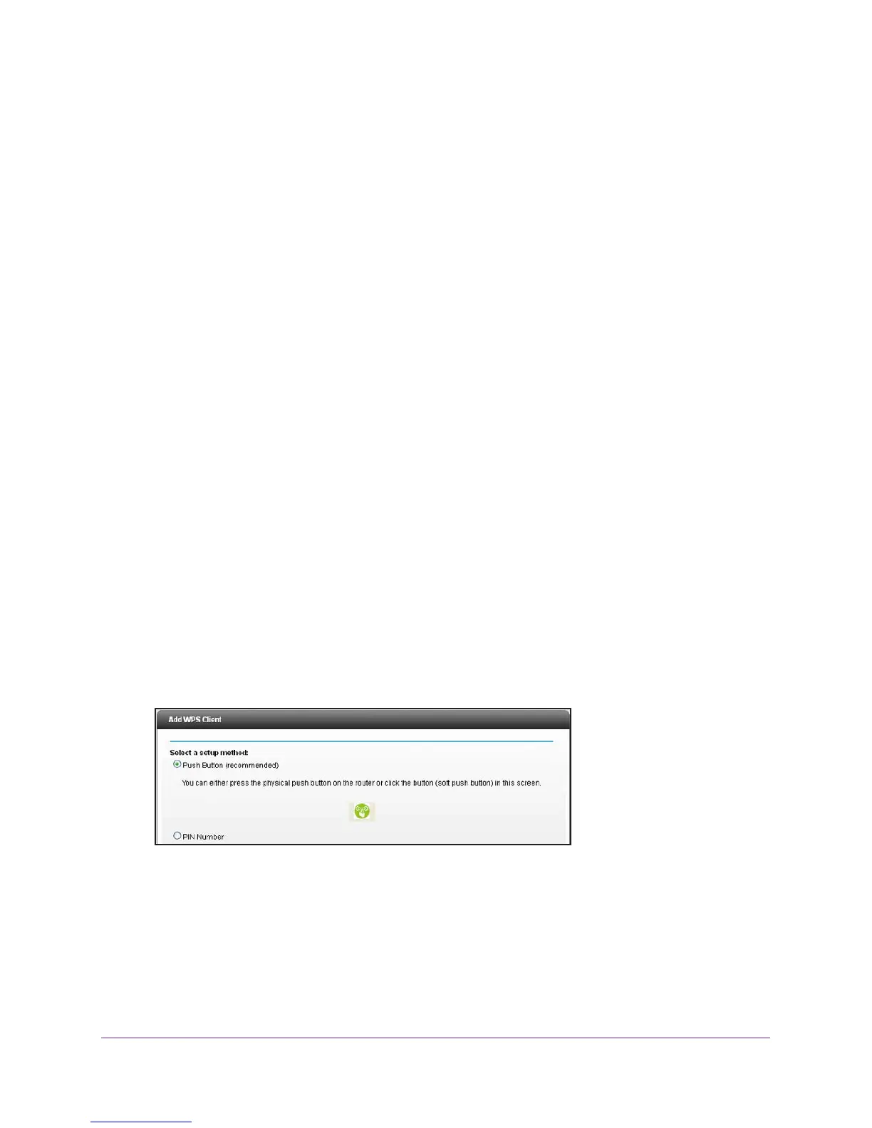 • Push button. Either click the WPS button on this screen, or press the WPS button on