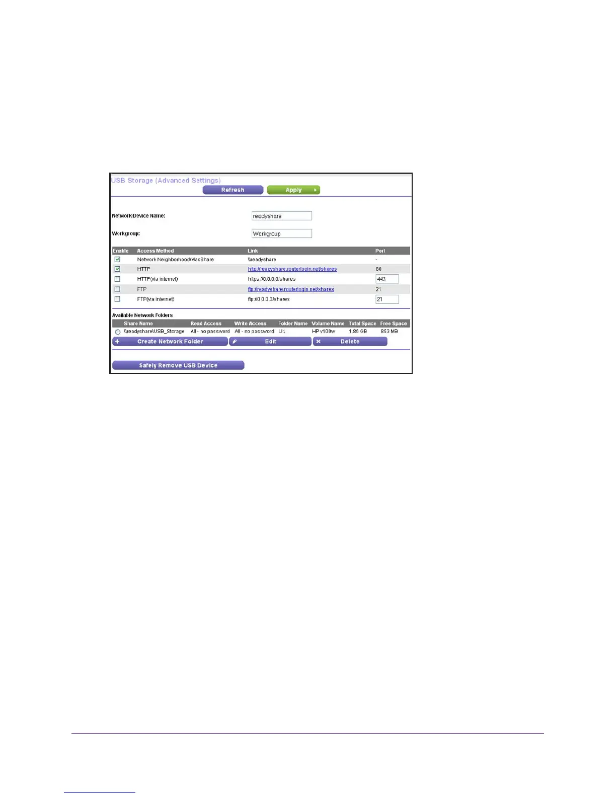 1. Select ADVANCED > ReadySHARE > Advanced Settings.