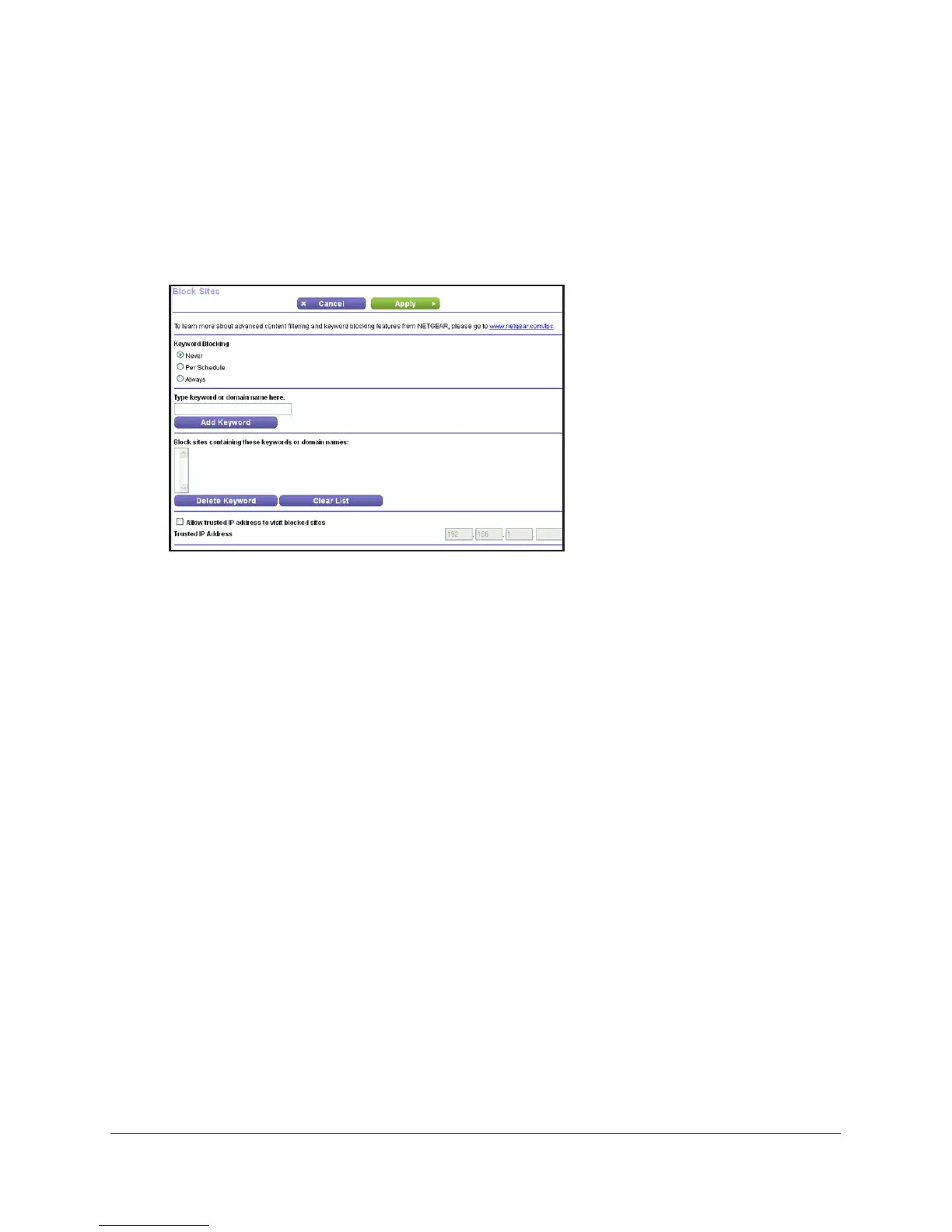 urn on keyword blocking according to the Schedule screen settings.