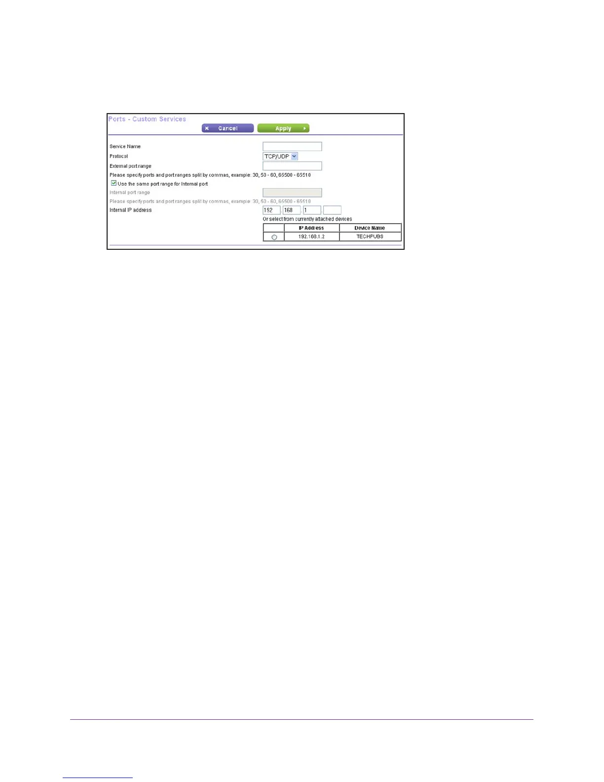 • Select the Use the same port range for internal port check box.