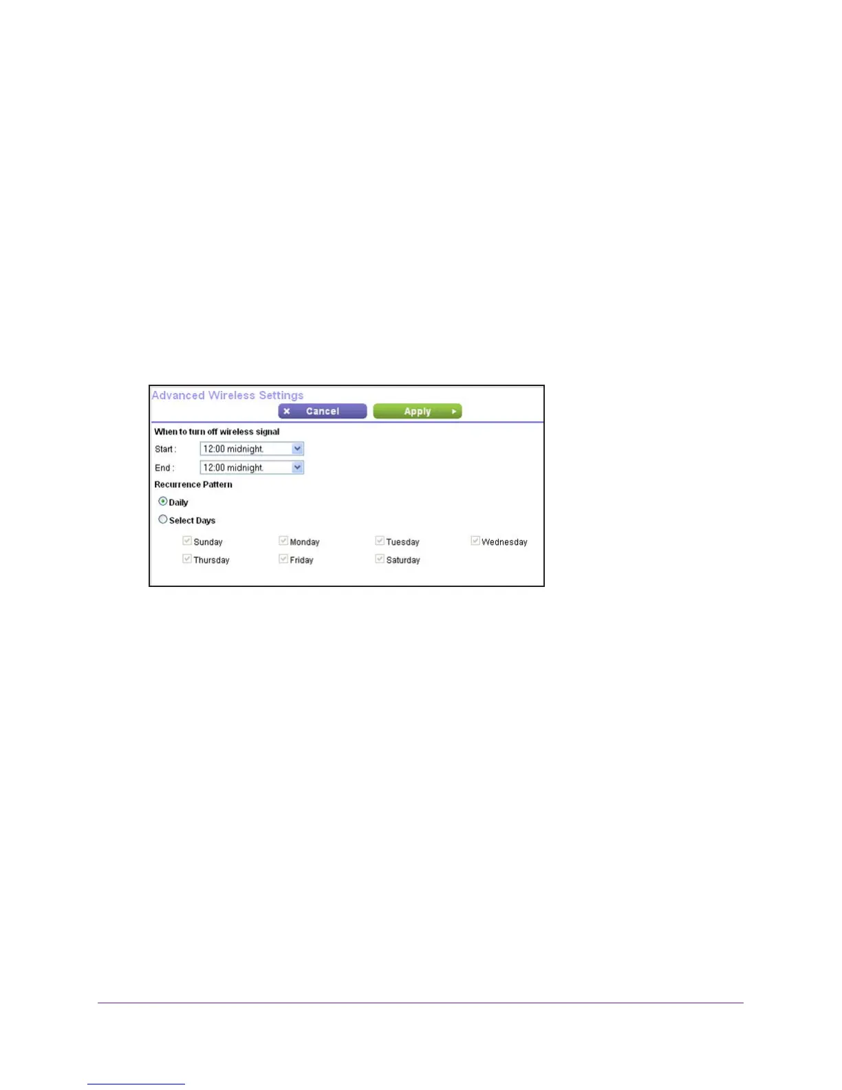 You can use this feature to turn off the wireless signal from your router at times when you do