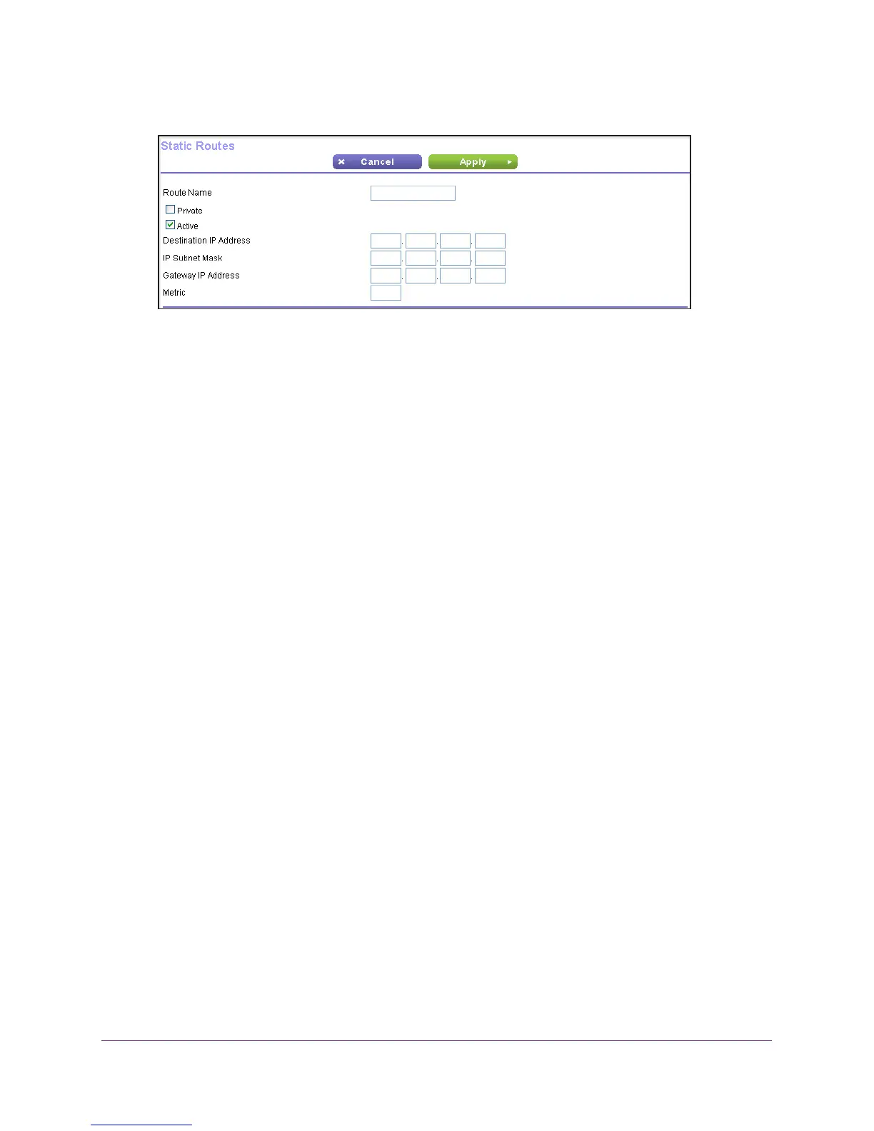 3. In the Route Name field, type a name for this static route (for identification purposes only.)