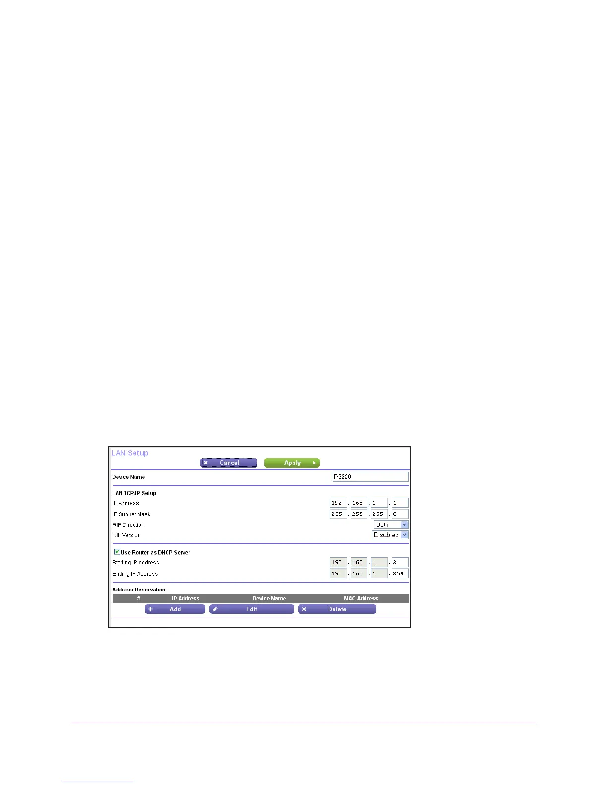 DHCP server. The router’s default LAN IP configuration is as follows: