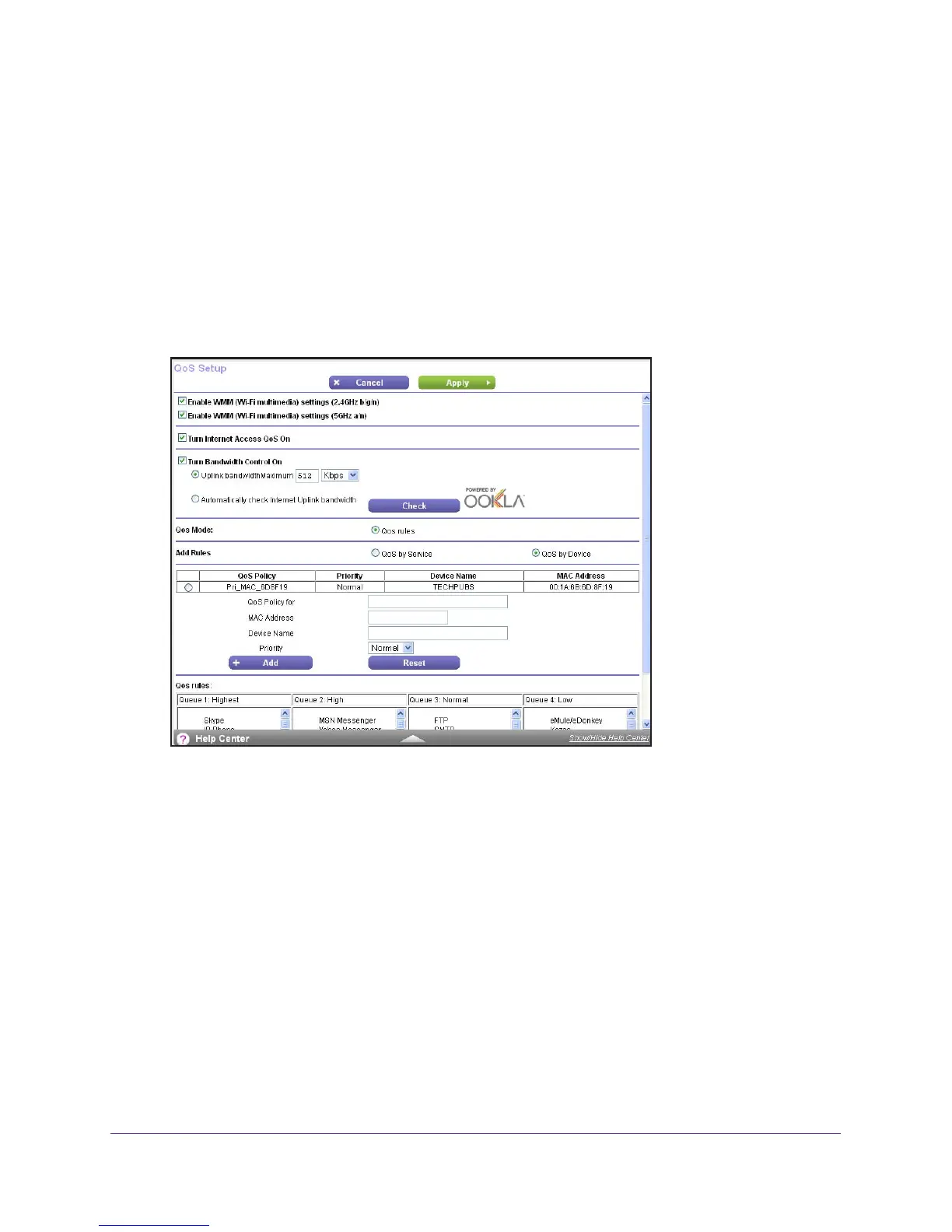 • To specify a device that is not in the MAC Device List, complete the QoS Policy for,
