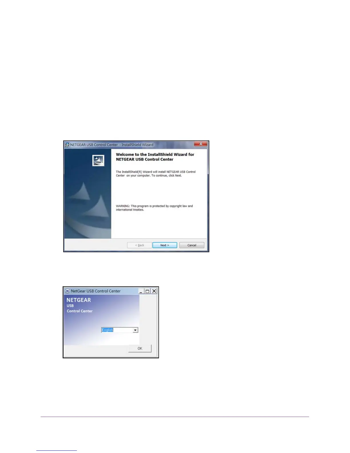 2. Follow the wizard instructions to install NETGEAR USB Control Center.