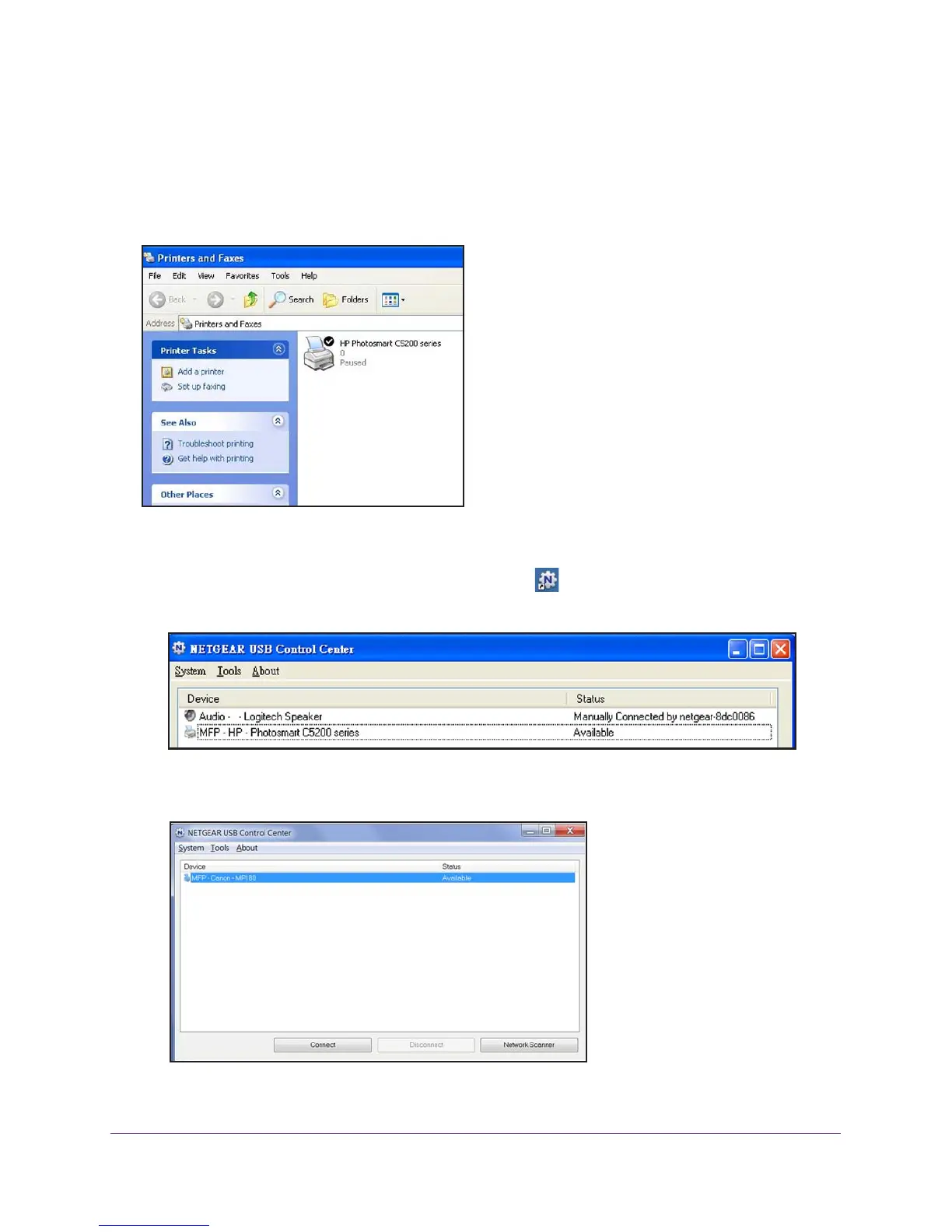 example, the USB printer displayed in the Windows Printers and Faxes window is ready for