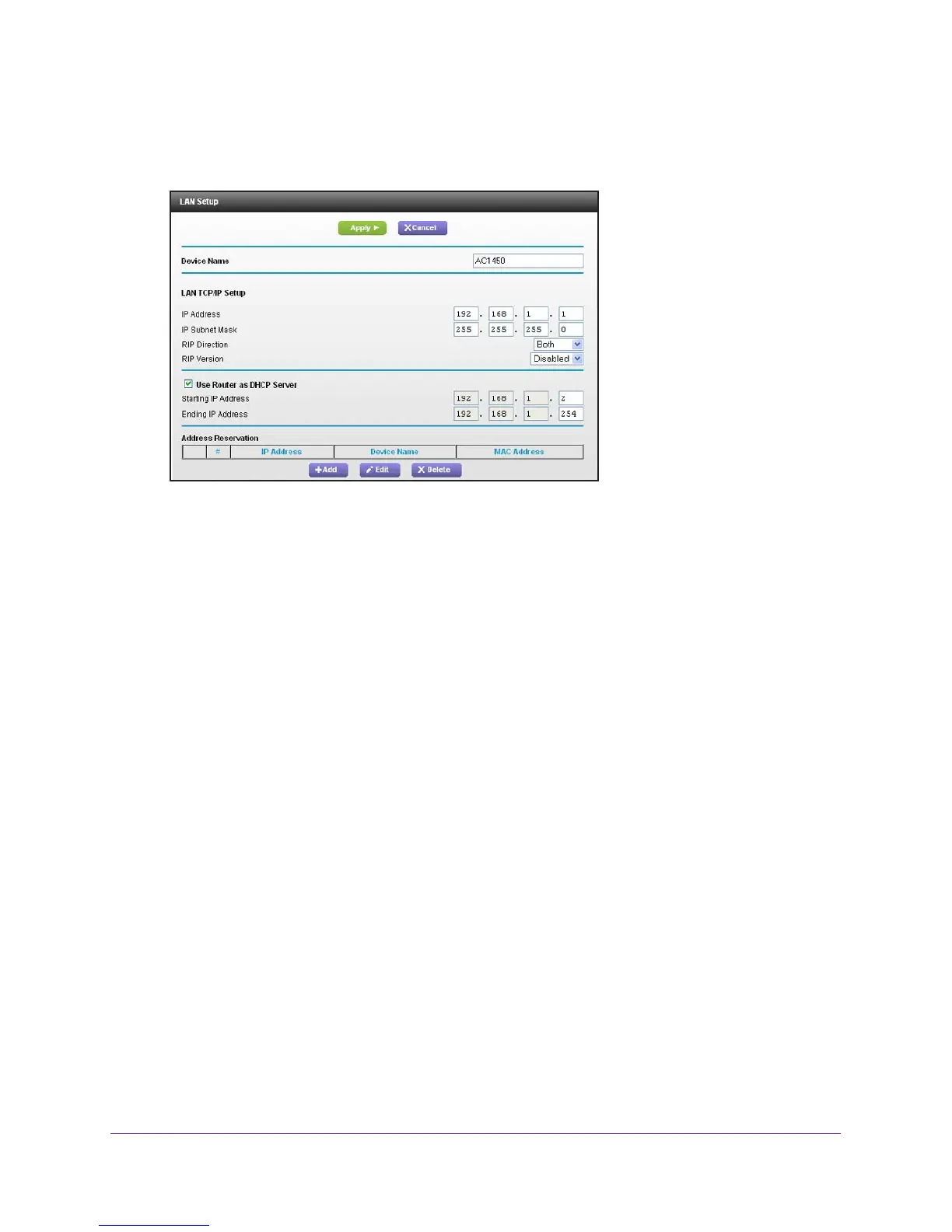 • IP Address. The LAN IP address of the router.