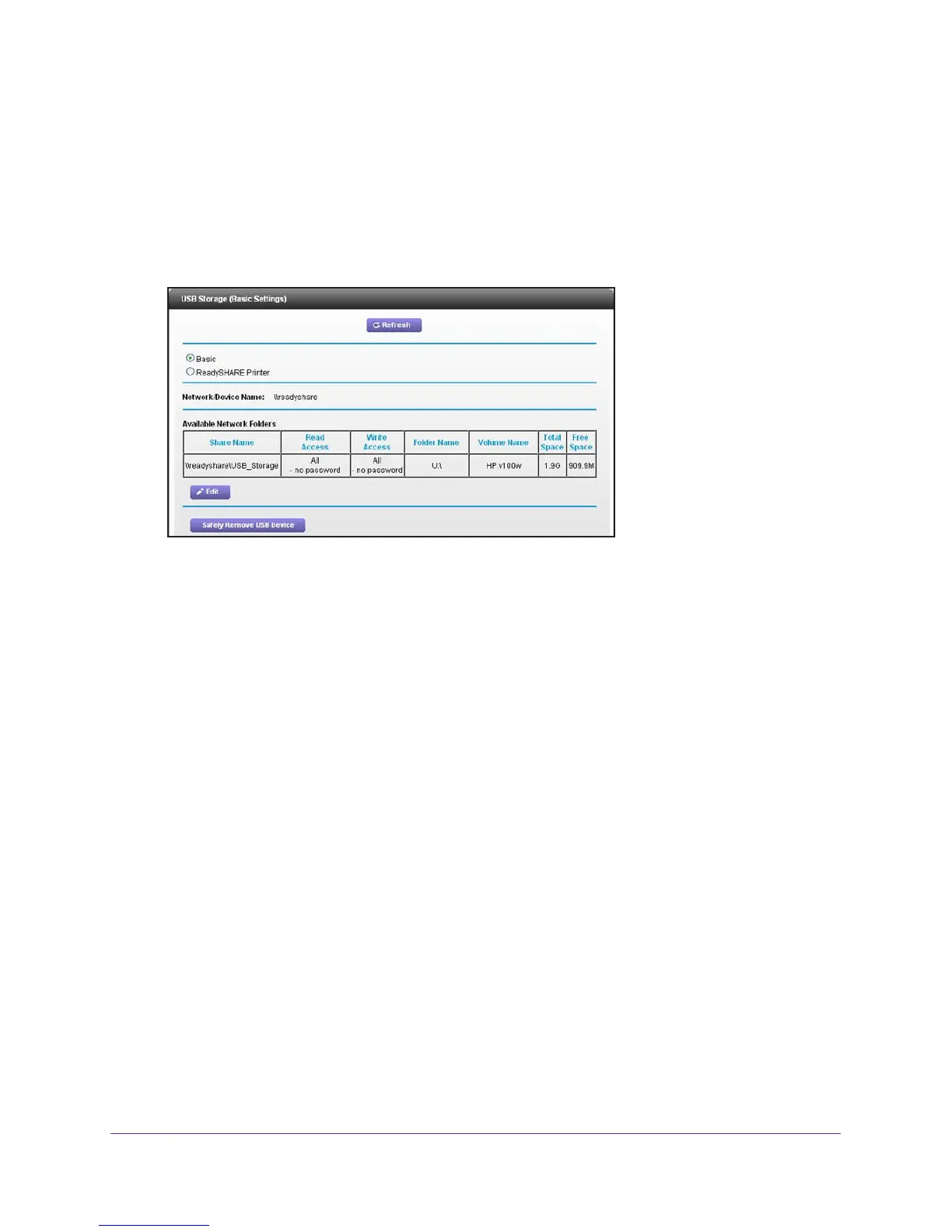 2. (Optional) To view the files and folders on the USB device, click the network device name or