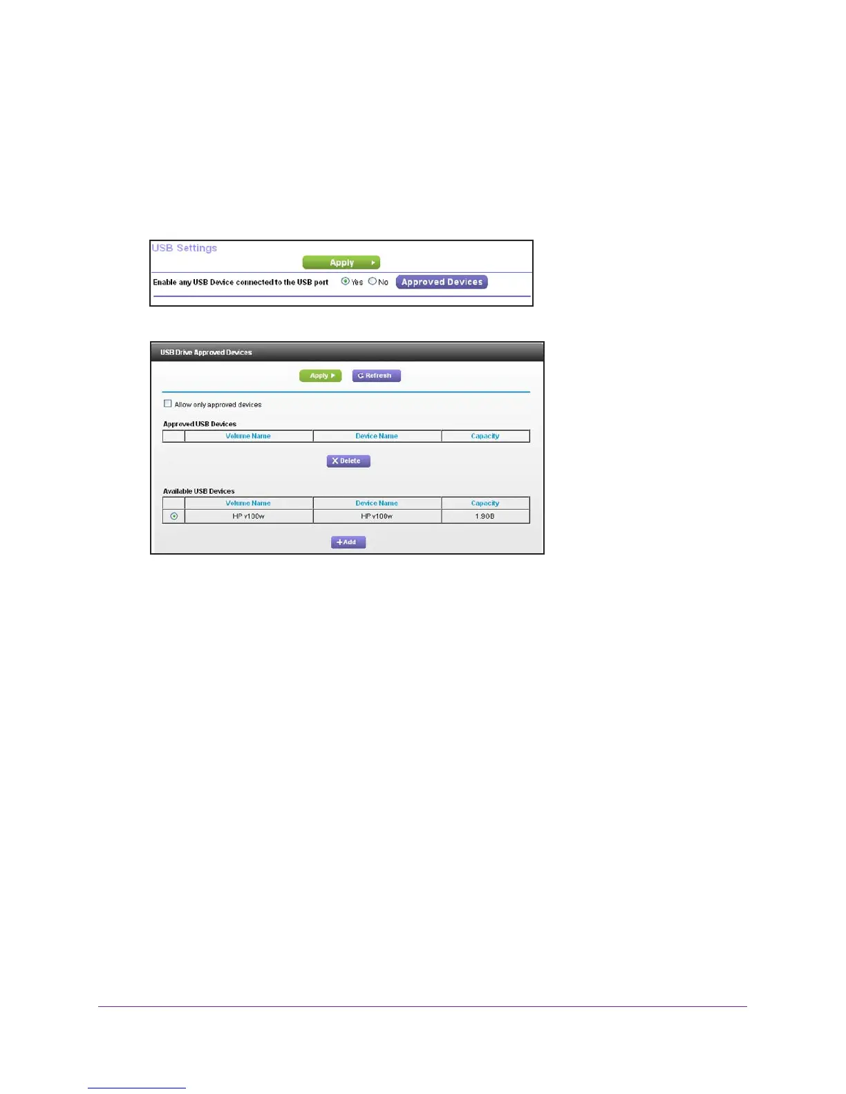 For more security, you can set up the router to share only approved USB devices.