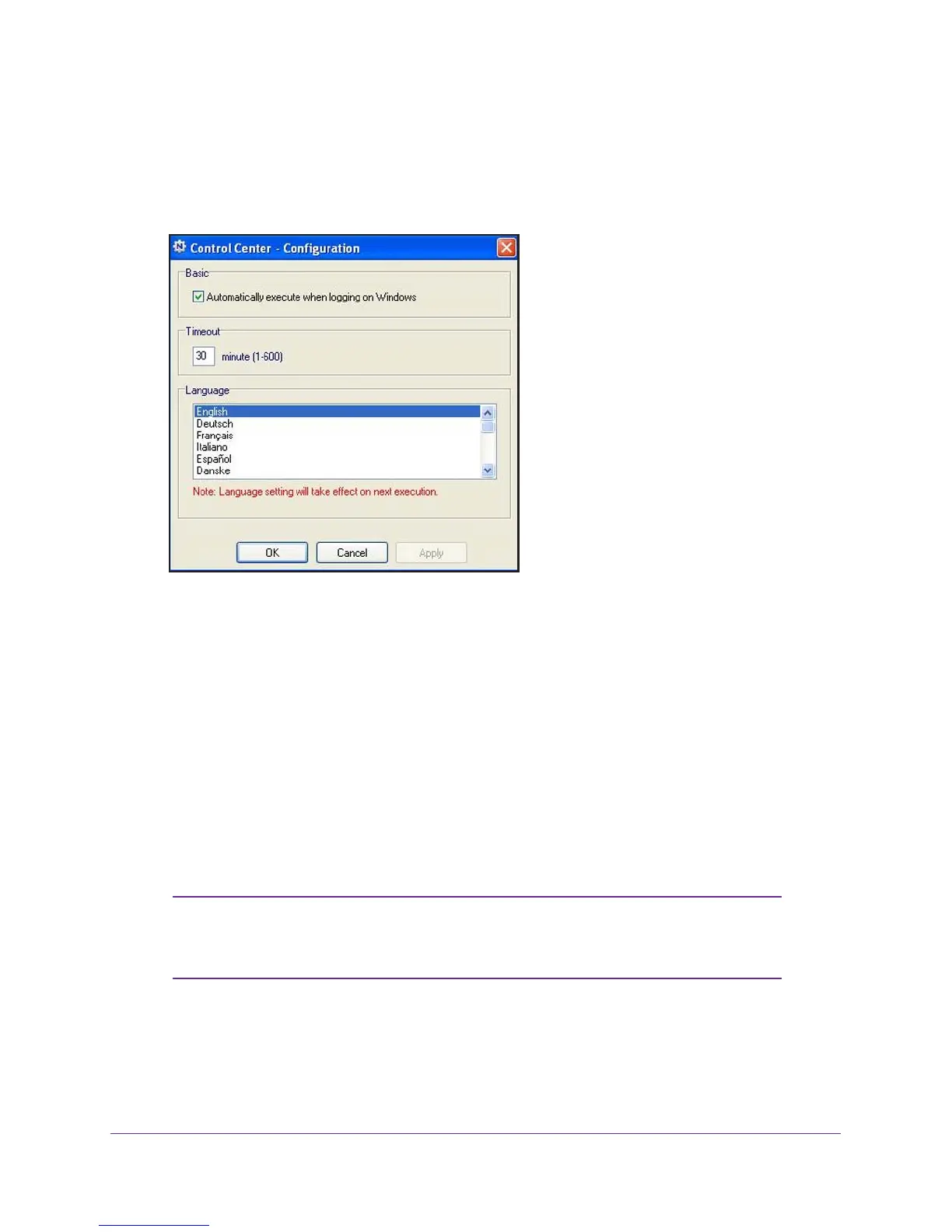 • Language. Select the display language for this utility